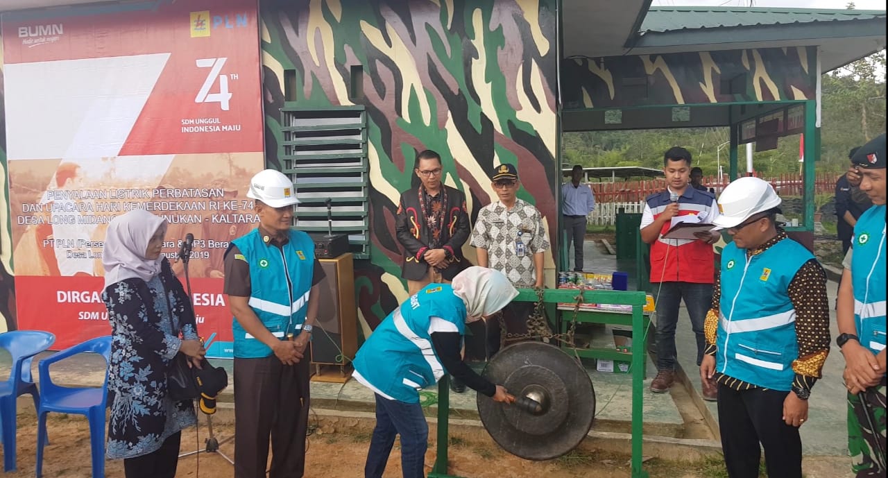 Bupati Nunukan Asmin Laura Hafid bersama General Manager PLN UIW Kaltimra Djoko Dwijatno meresmikan masuknya listrik PLN. Peresmian secara simbolis dilakukan dengan menyalakan kWh meter di Pos Lintas Batas Negara (PLBN) Long Midang Krayan, setelah melaksanakan upacara bendera peringatan Hari Kemerdekaan Republik Indonesia ke-74 di halaman PLN Kantor Pelayanan Krayan desa Long Midang Krayan.