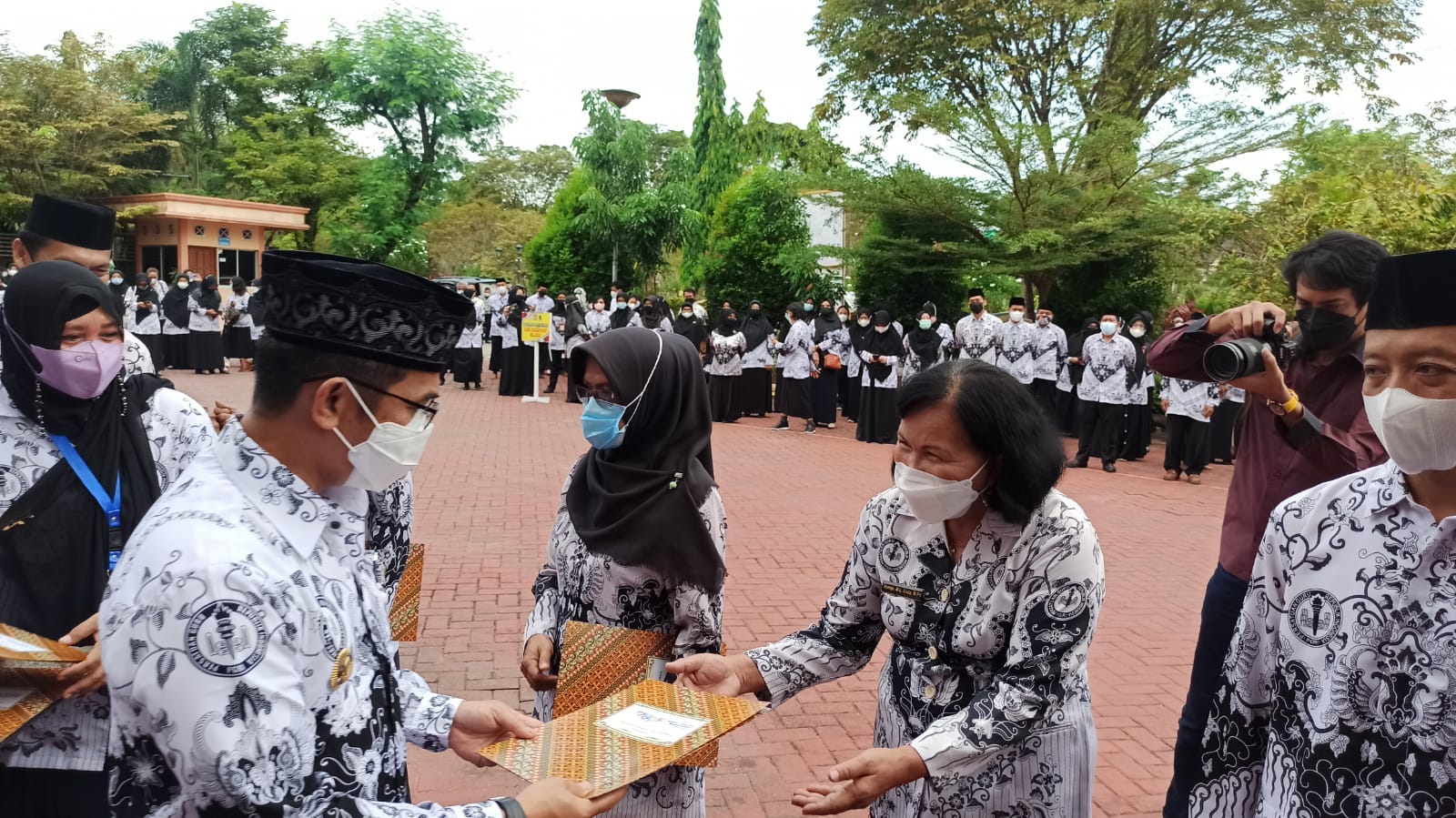 Penyerahan penghargaan diberikan langsung Wali Kota Balikpapan Rahmad Mas’ud di halaman Kantor Dinas Pendidikan dan Kebudayaan Balikpapan, pada Kamis (25/11/2021).