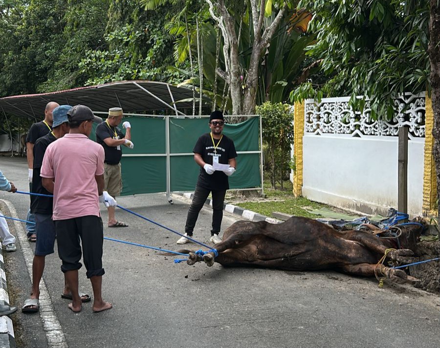 Pelaksanaan kurban juga melibatkan panitia, petugas medis hewan, serta warga sekitar agar prosesnya sesuai syariat dan standar kebersihan.