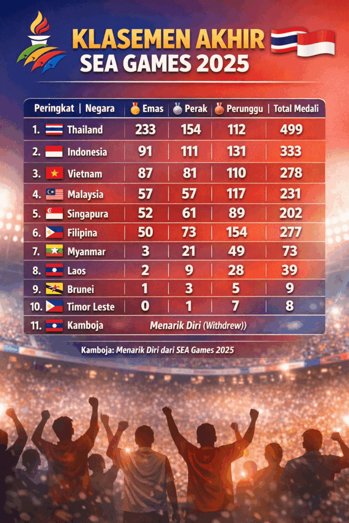 Dengan hasil ini, SEA Games 2025 menjadi penegasan bahwa Indonesia tetap menjadi kekuatan utama olahraga Asia Tenggara, sekaligus modal penting menuju agenda multi-event internasional berikutnya.