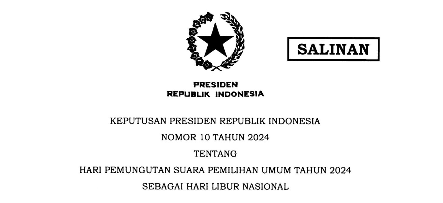 BALIKPAPAN, Inibalikpapan.com – Presiden RI Joko Widodo telah mengeluarkan Keputusan Presiden Republik Indonesia (Keppres) Nomor 10 Tahun 2024 tentang Hari Pemungutan Suara Pemilihan Umum Tahun 2024 Sebagai Hari Libur Nasional.