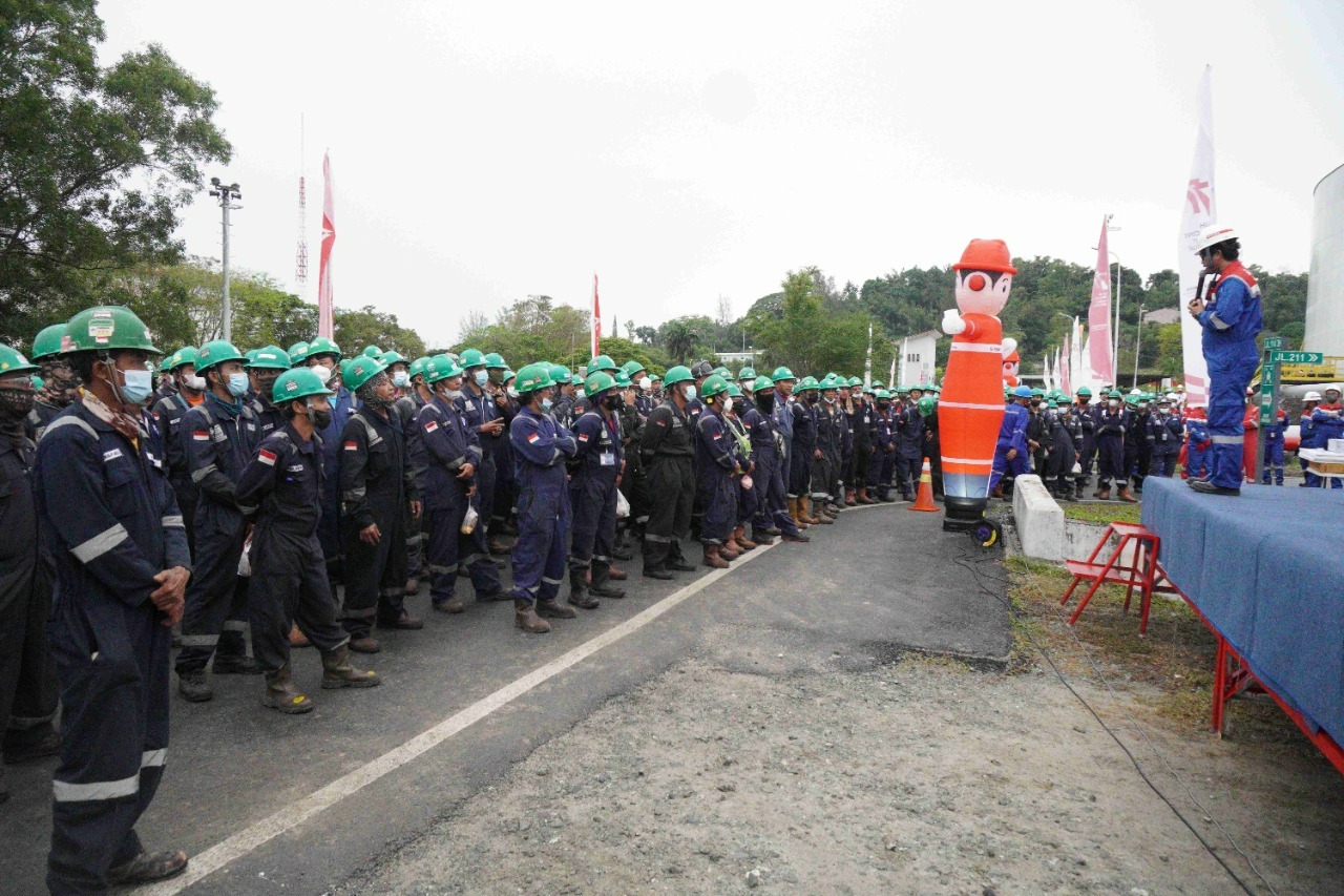 Kali ini, Pertamina menghadirkan salah satu istri mitra kerja untuk menyampaikan pesan dihadapan ribuan pekerja yang akan melaksanakan pekerjaan Turn Around (TA) di Kilang Balikpapan. Sabtu, (10/09/2022). Pelaksanaan Grand Safety Talk kali ini juga diawali dengan senam bersama.
