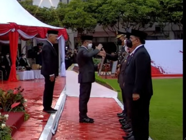 “Cinta NKRI dab pancasila sebagai alat pemersatu bangsa yang terdiri dari berbagai suku, budaya dan agama yang tertuang dalam pancasila,” ujar Rahmad Mas’ud ditemui awak media seusai upacara, Sabtu (1/10/2022).