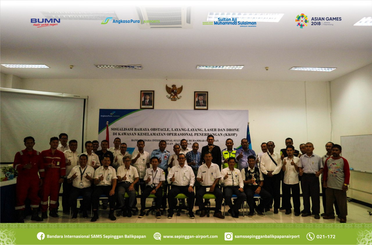 Kegiatan Sosialisasi Bahaya Obstekel, Layang-Layang, Laser dan Drone di Kawasan Keselamatan Operasional Penerbangan telah digelar secara berkala agar masyarakat sekitar kawasan Bandara SAMS Sepinggan Balikpapan dapat mematuhi aturan ini.