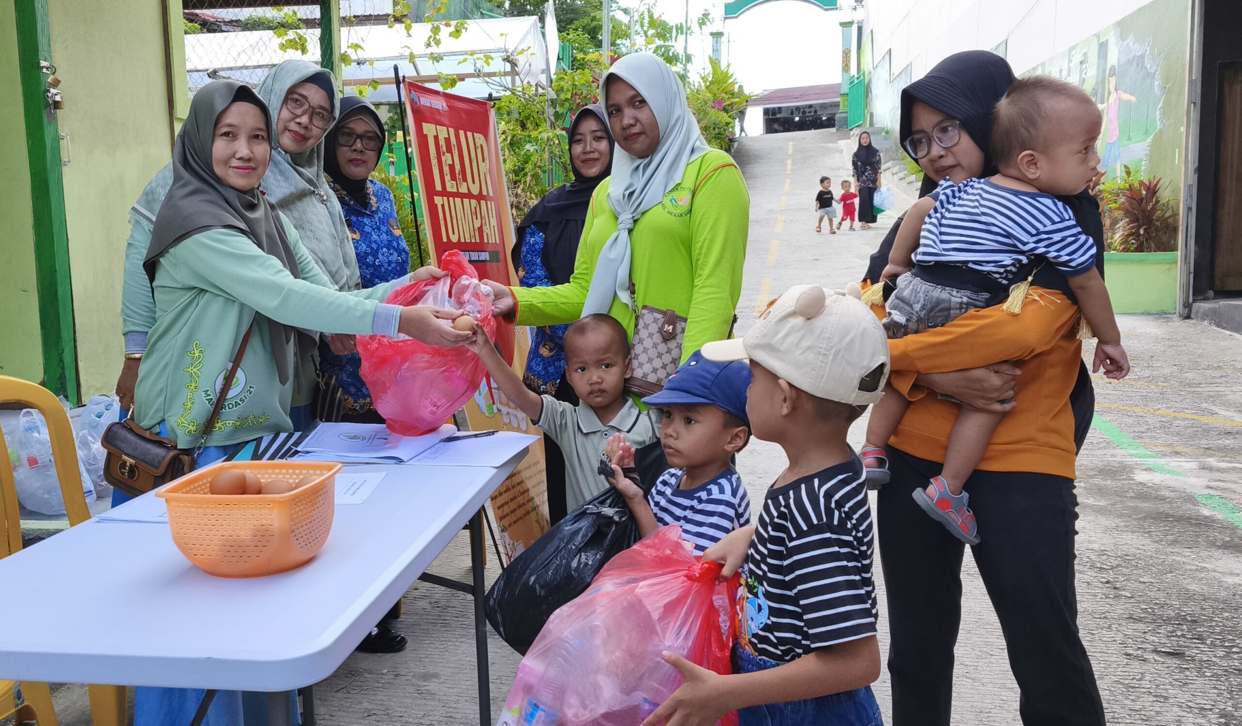Dijelaskan Kepala Puskesmas Mekar Sari Drg Lily Anggraini ada beberapa inovasi di posyandu ini yang cakupannya hingga tiga RT tersebut salah satunya Telur Tumpah atau Telur Tukar Sampah.