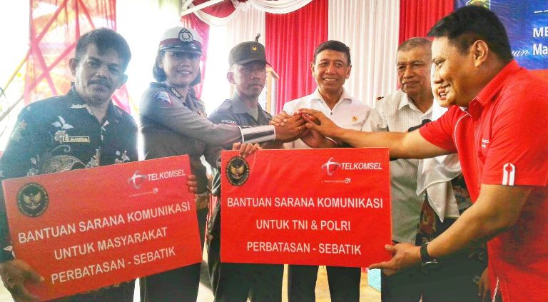 Telkomsel juga memberikan bantuan CSR alat komunikasi dyakni telepon seluler 4G bagi aparat maupun petugas di wilayah perbatasan, mulai dari TNI, kepolisian hingga aparat di tingkat Kecamatan dan Desa.