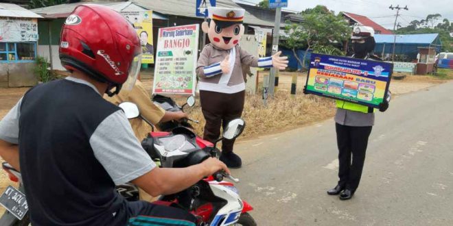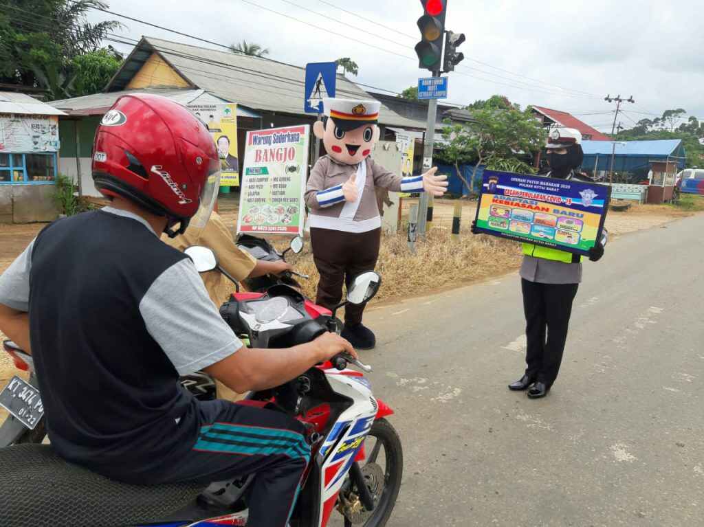 Menggunakan badut polisi Satuan Lalu Lintas Polres Kutai Barat melalui unit Dikyasanya, senin (27/07/20) memberikan sosialisasi, himbauan kampanye keselamatan berlalu lintas serta mensoisalisasikan adaptasi kebiasaan baru dalam menghadapi pandemi covid 19.