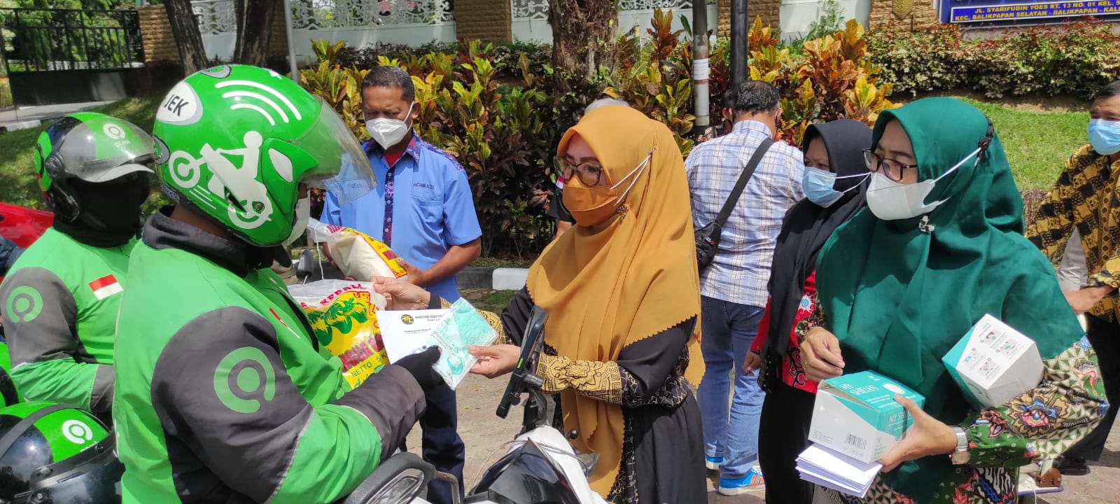Istri Wali Kota Berikan Bantuan Beras dan Uang Bagi Ratusan Tukang Ojek dan Sopir Angkot