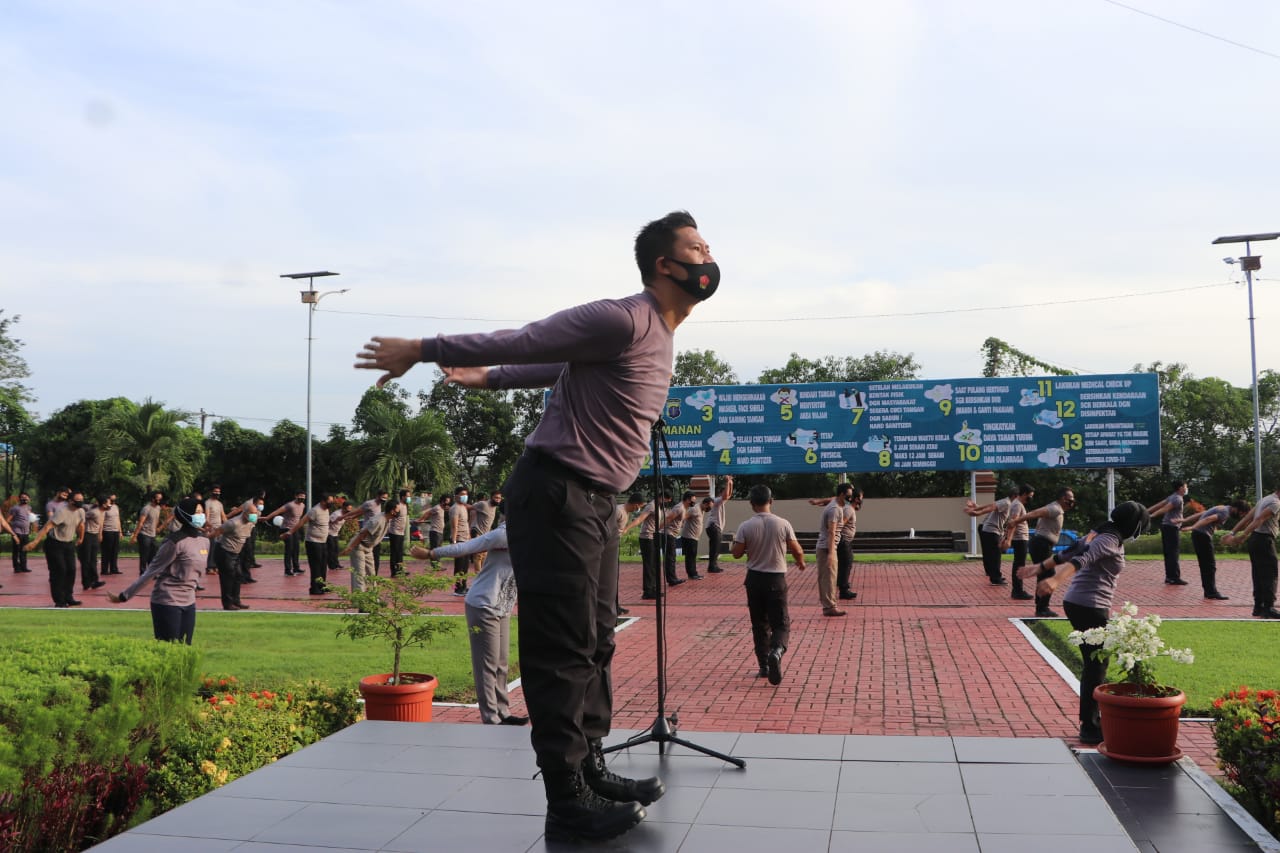 Jaga Daya Tahan Tubuh, Polda Kaltim Rutin Laksanakan Senam AW S3