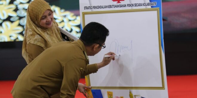 BALIKPAPAN, Inibalikpapan.com – Pemerintah Kota Balikpapan bersama lima distributor yakni PT Artam Kumalajaya, PT Sinar Pangan Borneo, PT Sinar Surya Wijaya Raya, PT Karya Prima Jaya dan Sinar Alam Nabati melakukan kerjasama dalam menyediakan barang kebutuhan pokok dan barang penting dalam upaya pengendalian inflasi di kota Balikpapan.