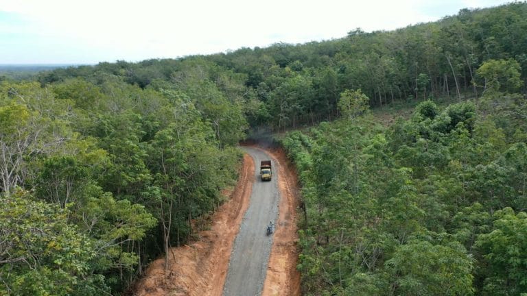 Tim TMMD 108 melakukan pemantauan dari udara dengan menggunakan drone. Tampak dari udara hasil dari pengerjaan jalan baru terlihat Dua jembatan di bangun di Jalan Baru diantanya jembatan pertama Jembatan Kayu Ulin dan kedua jembatan Beton terbangun.