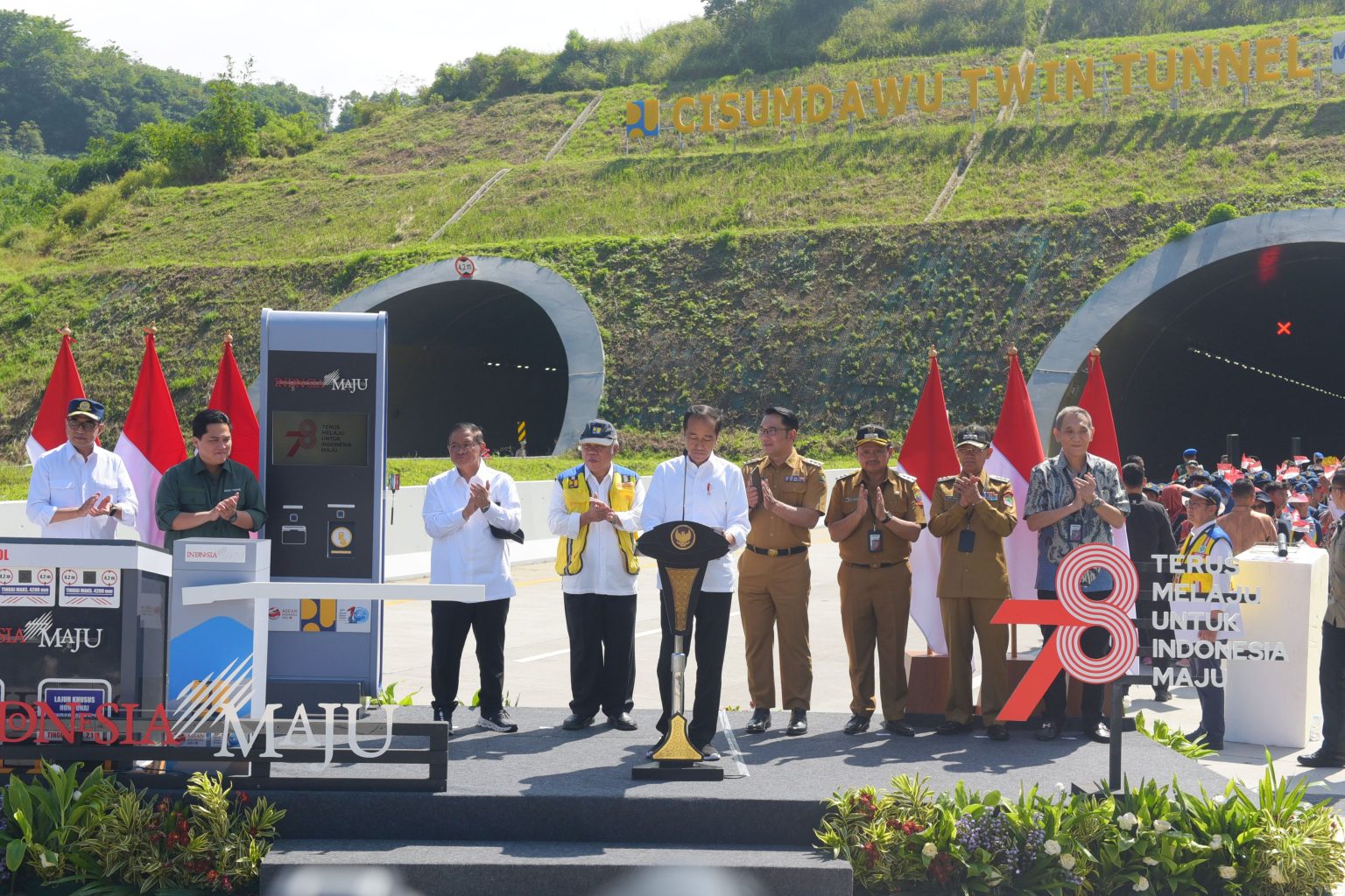 “Ini di seluruh Indonesia tidak ada jalan tol yang melewati dua terowongan seperti yang kita lihat pada pagi hari ini,” ucap Presiden.
