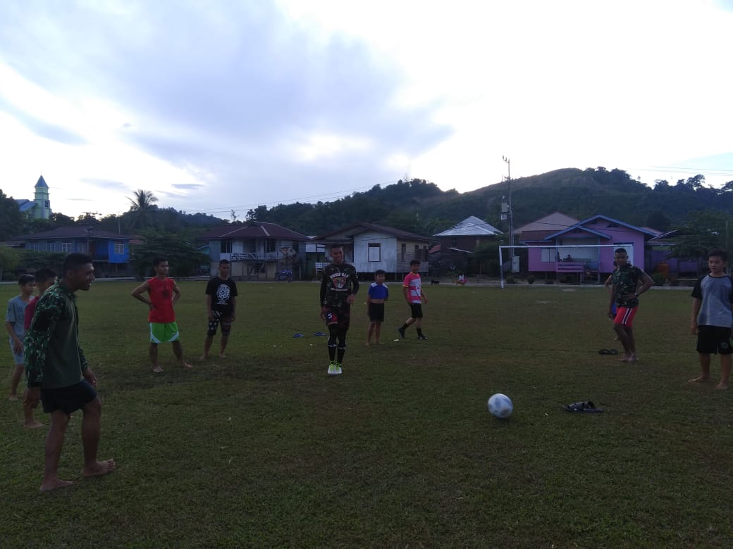 Kegiatan ini dilakukan hampir setiap sore, setelah selesai melaksanakan sejumlah pekerjaan di sasaran dan menunggu waktu magrib, maka satgas TMMD menyempatkan waktunya untuk berolah raga bersama anak – anak.