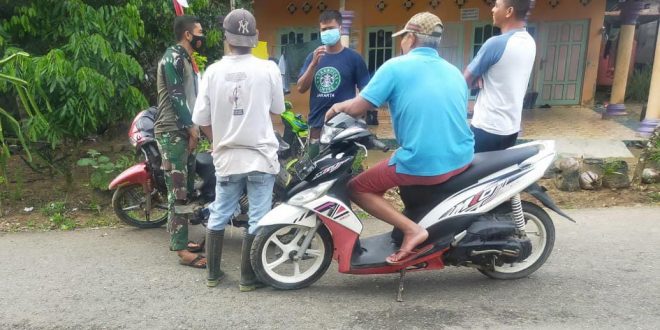 Senin sore, 29/03/21. Beristirahat usai pembersihan di lokasi jelang penutupan TMMD, Koptu Syamsudin bersama warga ngobrol bersama. Kedekatan itu mulai terjalin sejak adanya program membangun desa, disamping itu keramahan para Tentara dalam bergaul dan sambutan baik warga membuat kemanunggalan TNI-warga semakin mudah menyatu.