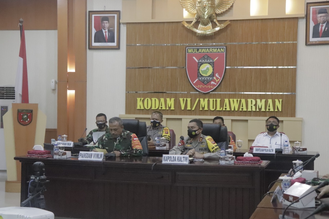 BALIKPAPAN, Inibalikpapan.com – Dalam rangka antisipasi Pencegahan dan Penularan Covid-19 terkait Antisipasi libur panjang dari tanggal 28 Oktober sampai dengan 1 November 2020 Pangdam VI/MulawarmanMayjen TNI Heri Wiranto, S.E., M.M., M.Tr. (Han) bersama Kapolda Kaltim Irjen Pol Herry Rudolf melaksanakan Video Conference dengan Jajaran Dansatkowil jajaran Kodam VI/Mlw dan Kasatwil satjar Polda Kaltim yang berlangsung di Ruang Yudha Makodam VI/Mulawarman, Selasa (27/10/2020).