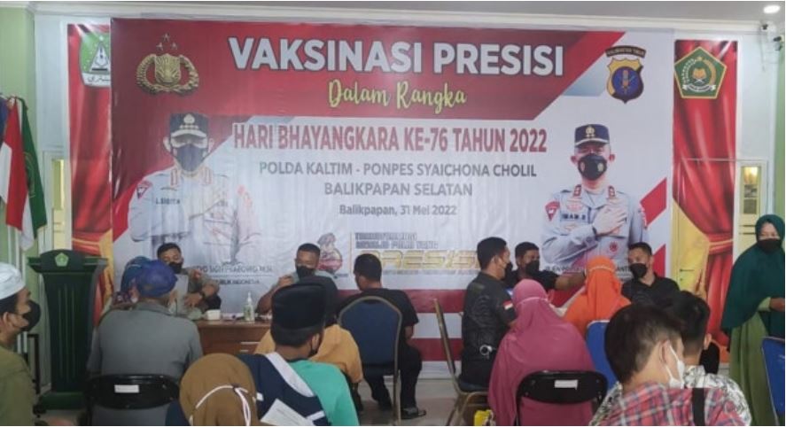 Jelang Hari Bhayangkara ke-76 Polda Kaltim Gencarkan Vaksinasi dan Bantu Pembangunan Ponpes Syaichona Cholil