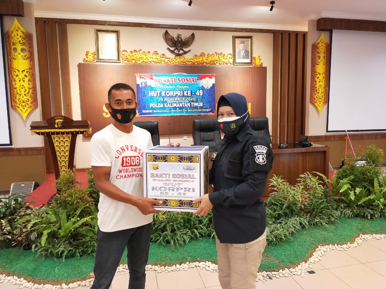 BALIKPAPAN, Inibalikpapan.com — Dalam rangka HUT ke 49 Korps Pegawai Republik Indonesia (KORPRI) Tahun 2020, PNS Polri Polda Kaltim melaksanakan serangkaian kegiatan bakti sosial. Salah satunya dengan memberikan bantuan sembako kepada para Pekerja Harian Lepas yang ada di Polda Kalimantan Timur, Selasa (24/11/2020).