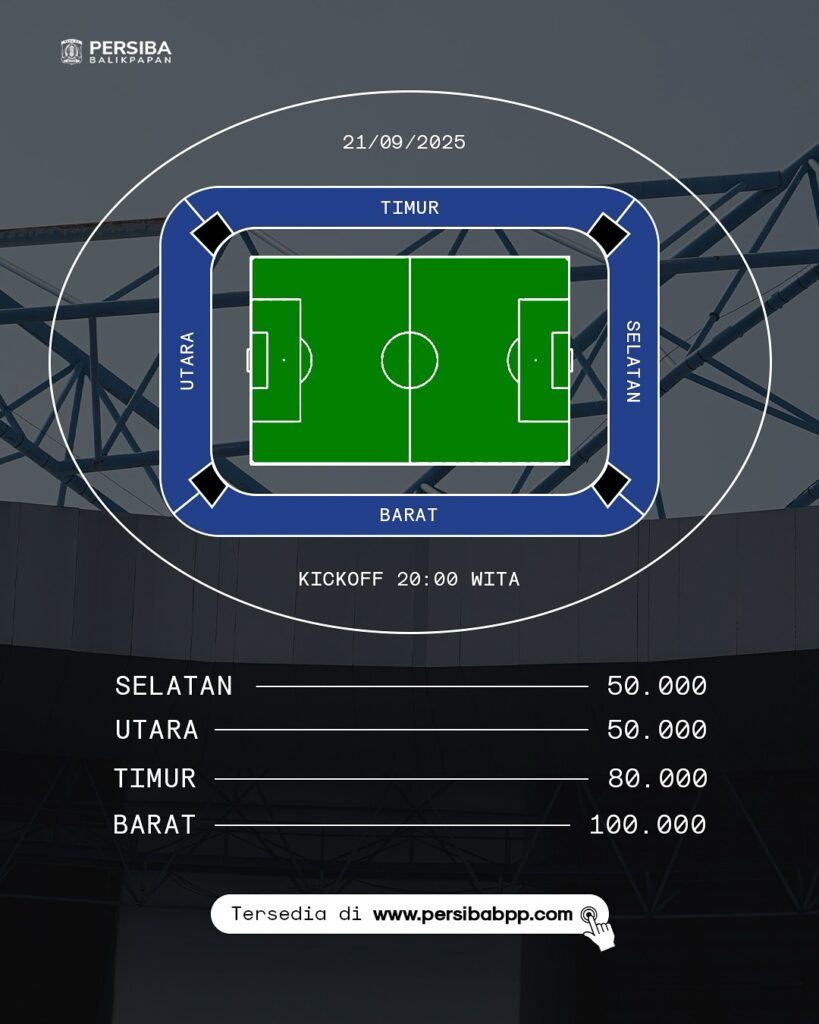 BALIKPAPAN, Inibalikpapan.com – Persiba Balikpapan resmi merilis harga tiket untuk pertandingan kandang pada Minggu, 21 September 2025, kickoff pukul 20.00 WITA.