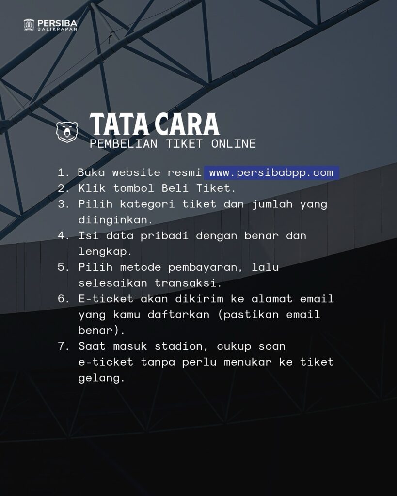 Persiba juga menerangkan tata cara pembelian tiket secara online: