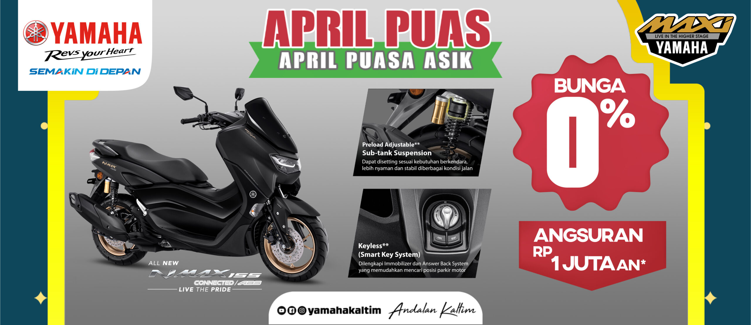 “Di Ramadan kali ini, Yamaha ada program April Puas, alias April Puasa Asik. Mengapa demikian. Dengan April Puas, Hebatnya lagai Yamaha Lover, selain angsuran yang murah banget Rp 1.953.000/ Bulan selama 11 Bulan untuk membawa pulang All New Nmax bunganya pun hanya 0 persen,” kata Efendy Ariadi, Rabu (13/4/2022).