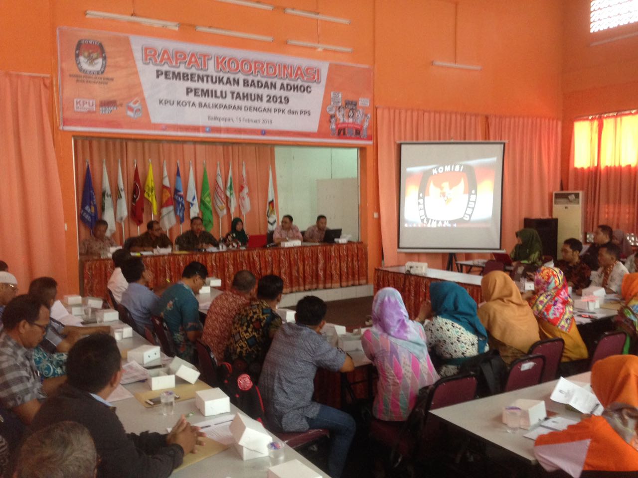 BALIKPAPAN, Inibalikpapan.com —Komisi Pemilihan Umum Kota Balikpapan menggelar Rapat Kordinasi Pembentukan Badan Adhoc Pemilihan Umum Tahun 2019 yang digelar di Aula Kantor KPU Kota Balikpapan, Kamis pagi (15/02/2018).