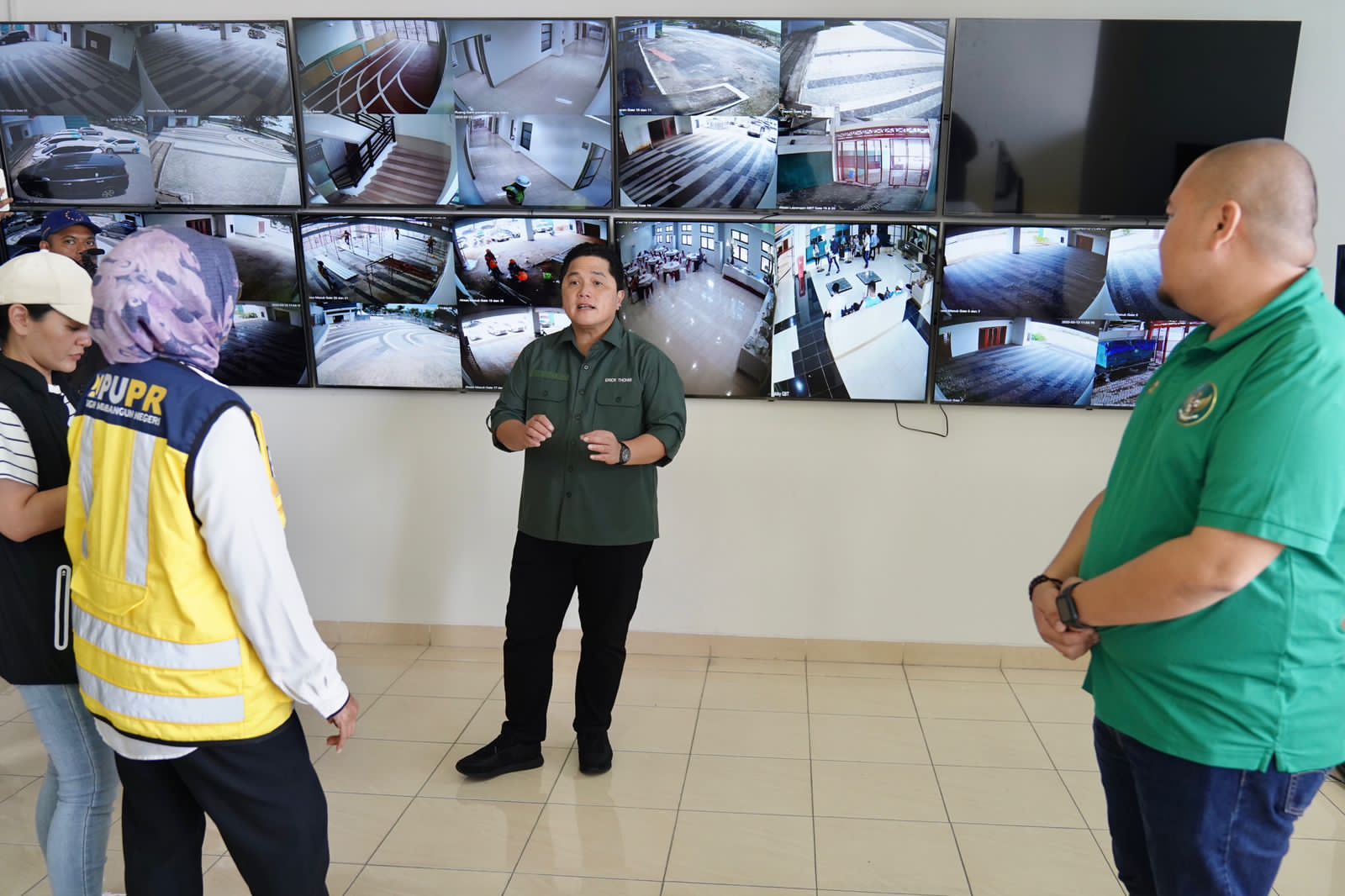 Menteri BUMN iru meninjau langsung proses renovasi Stadion Gelora Bung Tomo pada Senin (13/03/2023). Pemerintah Kota (Pemkot) Surabaya dan Kementerian PUPR dua bulan terakhir elakukan finishing perbaikan stadion.