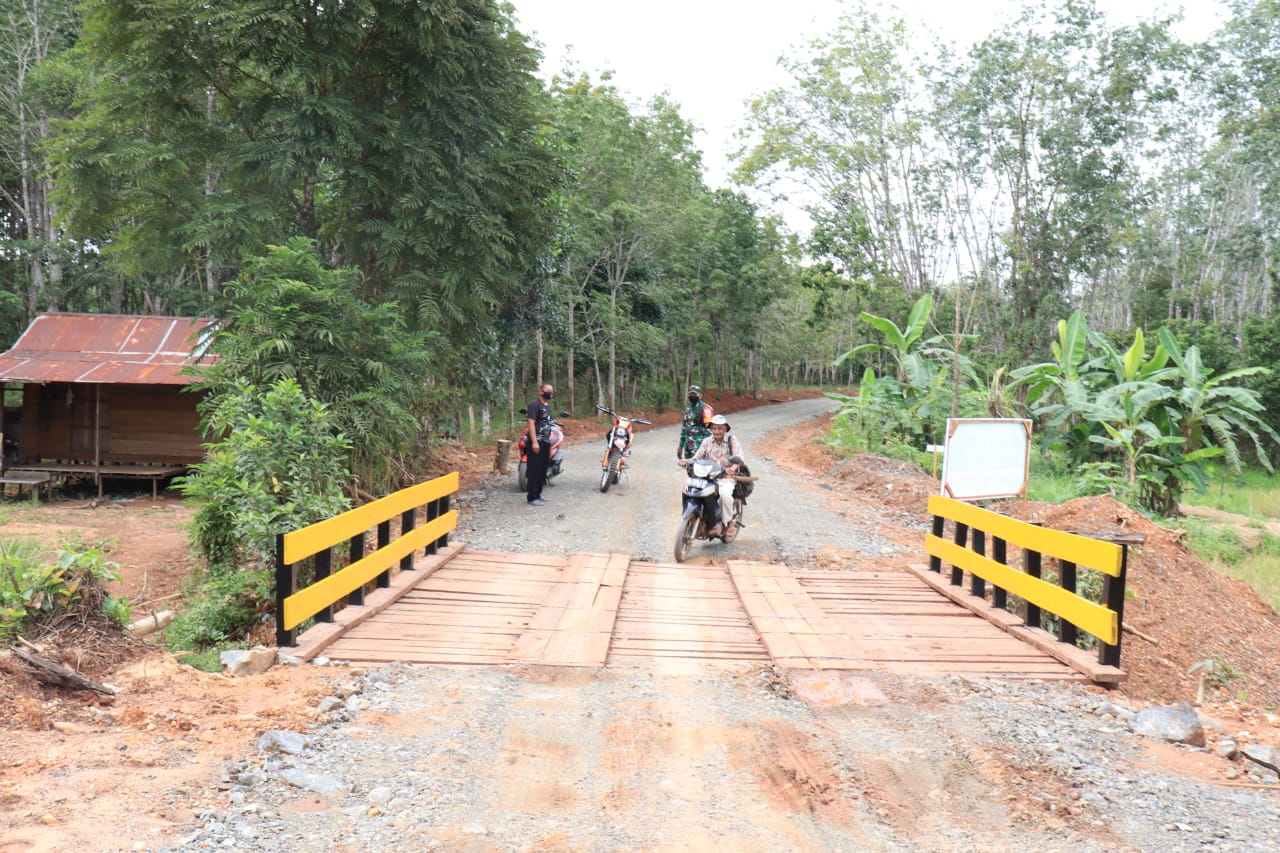 Melalui TNI Manunggal Membangun Desa Kodim 1006/ Mtp semua diperbaiki dibangun seutuhnya dengan menggunakan kayu Ulin, dan kini dikerjakan sudah rampung 100% dapat dilalui.
