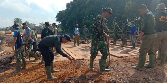 Sejak pembangunan jembatan tersebut dari tanggal 2 Oktober 2019 TNI dibantu oleh beberapa anggota Polri dan masyarakat sekitar yang bahu membahu memaksimalkan pekerjaan tersebut, karena target penyelesaian pekerjaan tersebut akhir bulan ini saat penutupan TMMD ke 106 Kodim 0902/Trd nanti.