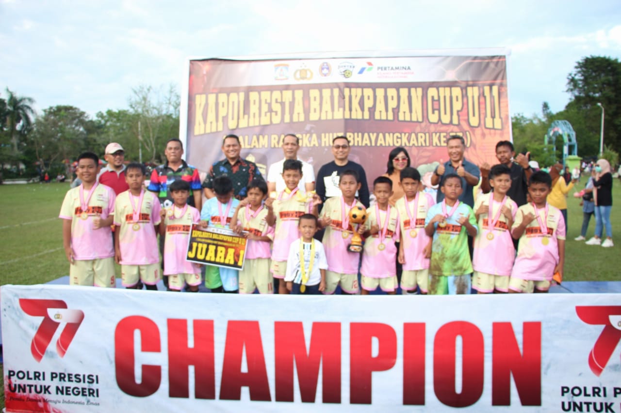 “Kegiatan yang penuh sportivitas ini dalam rangka HUT ke-77 Bhayangkara yang jatug pada 1 Juli 2023, sehingga Kepolisian melaksanakan kegiatan di masyarakat sudah dilakukan dalam hal pembinaan usia dini salah satunya U-11,” ujar Kapolresta Balikpapan, AKBP Anton Firmanto.