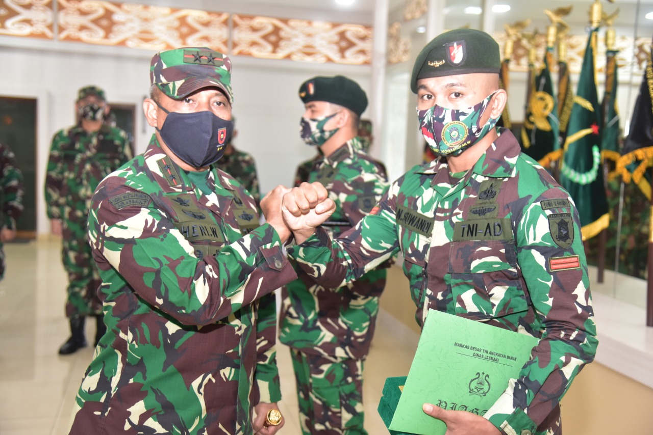 Dalam acara ini, Pangdam memberikan penghargaan kepada Pratu Suwandi anggota Yonif R 600/Modang selaku perwakilan dari Kodam VI/Mlw yang meraih juara 2 tingkat RGB perorangan pada kejuaraan BDM terpusat piala Kasad 2020 yang diikuti jajaran Kodam seluruh indonesia khususnya Kodam VI/Mlw.