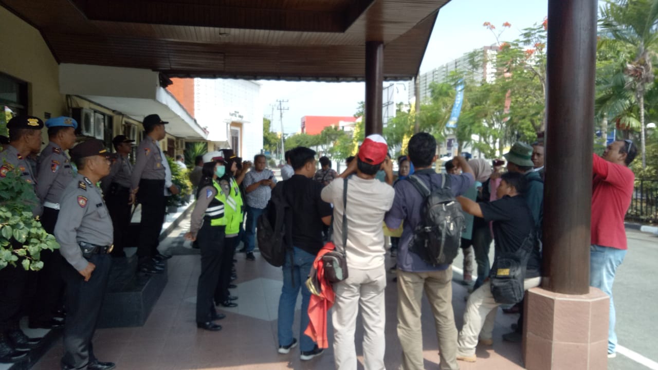 BALIKPAPAN, Inibalikpapan.com – Puluhan Jurnalis Balikpapan yang tergabung dalam Forum Jurnalis Bersolidaritas melakukan aksi damai di Kantor Polrestas Balikpapan, Senin (04/03)
