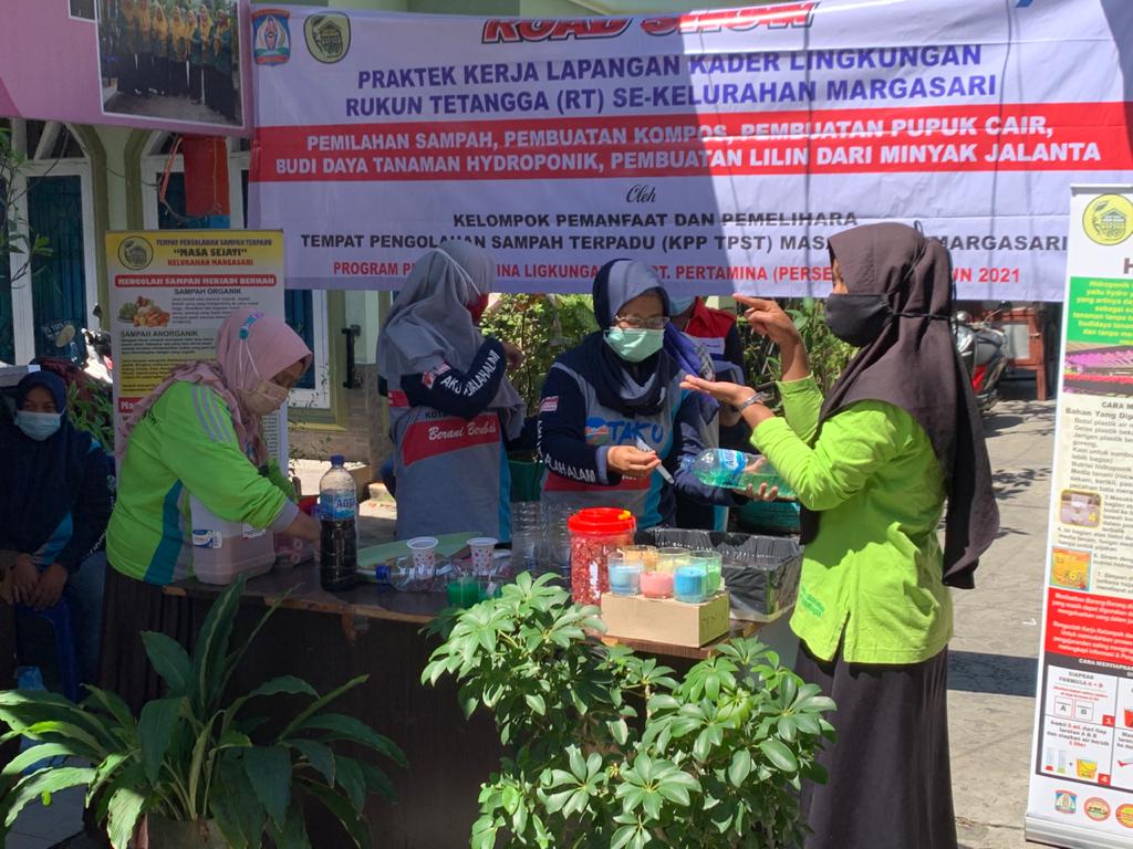 Program Praktek Kerja diikuti oleh warga RT 10 Kelurahan Margasari yang berjumlah 17 orang. Adapun materi yang disampaikan meliputi pengumpulan dan pemanfaatan jelantah sebagai lilin, pembuatan pupuk kompos, pembuatan pupuk cair serta pelatihan pembuatan hidroponik.