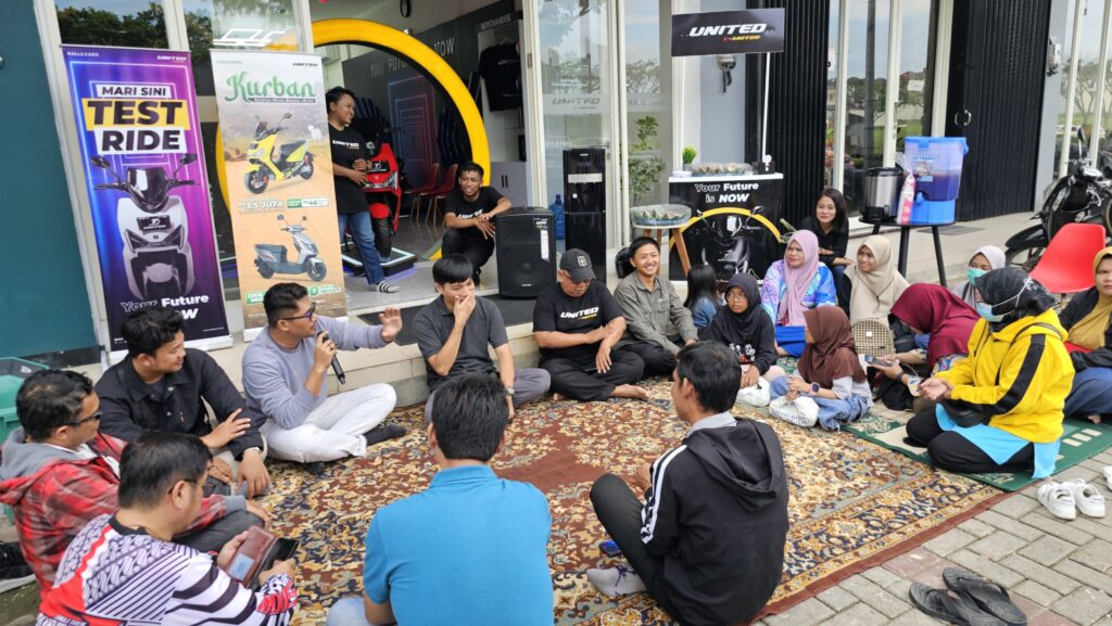 Acara ini berlangsung di lapangan parkir Showroom United E-Motor Balikpapan, Sabtu (22/6/2024). Dihadiri oleh puluhan anggota komunitas yang memiliki motor listrik United dari Tipe T-Series (TX3000, TX1800, T1800) hingga Tipe MX1200. Tidak hanya berkumpul, mereka saling bertukar cerita dan pengalaman mengendarai motor listrik.