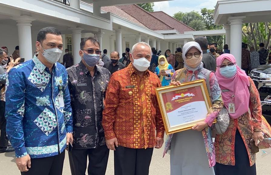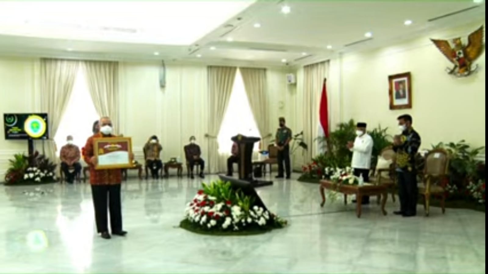 Penghargaan tersebut telah diterima langsung Gubernur Kaltim Isran Noor di Istana Wakil Presiden dengan kapasitas terbatas pada Minggui (13/09/2021) pagi.