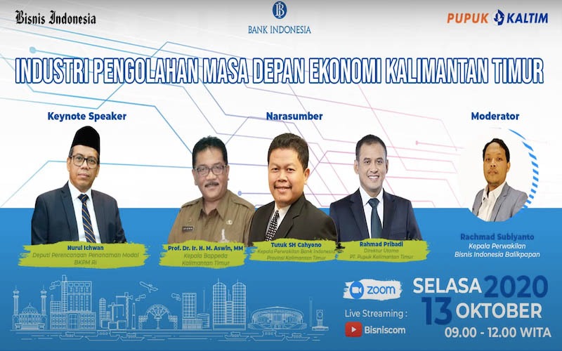 BALIKPAPAN, Inibalikpapan.com – Bisnis Indonesia Perwakilan Balikpapan menggelar webinar berkolaborasi dengan Pupuk Kaltim, Bank Indonesia Provinsi Kalimantan Timur dan Pemerintah Provinsi Kalimantan Timur dengan mengambil tema Industri Pengolahan Masa Depan Ekonomi Kaltim.