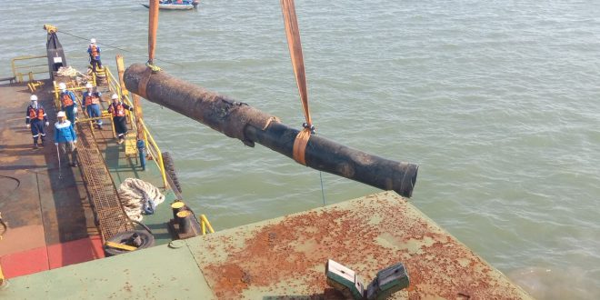 BALIKPAPAN, Inibalikpapan.com – Pertamina melakukan pengangkatan pipa yang putus di Teluk Balikpapan dibawah pengawasan TNI AL, Kepolisian Daerah dan Kejaksaan.