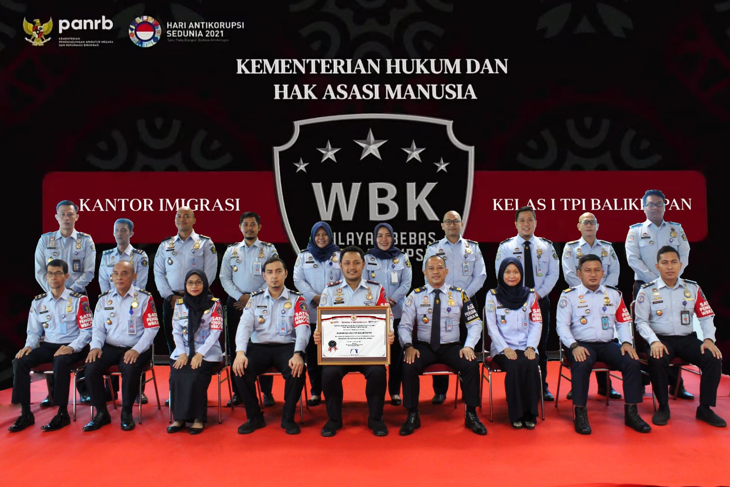 Kantor Imigrasi Balikpapan menjadi salah satu dari 49 unit kerja Kementerian Hukum dan HAM yang berhasil memperoleh predikat WBK Tahun 2021.
