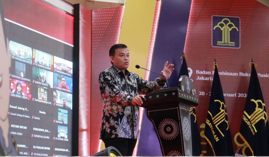 Widodo dalam sambutanya menyampaikan terkait Badan Pembinaan Hukum Nasional berupaya untuk mereformasi dan meningkatkan kualitas Program Pembinaan Hukum Nasional.