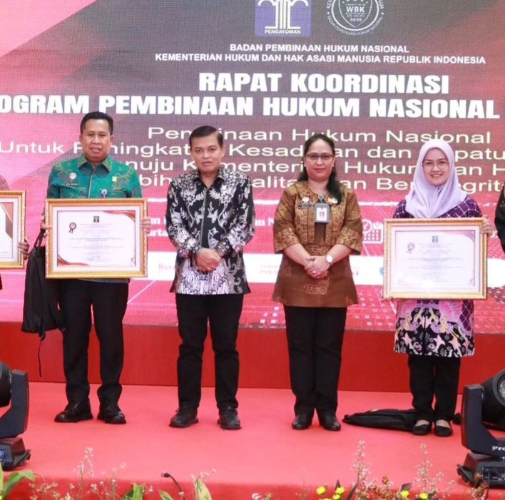 Dalam kesempatan tersebut, Kepala Badan Pembinaan Hukum Nasional Prof. Dr. Widodo Ekatjahjana, S.H., M.Hum memberikan penghargaan kepada Satuan Kerja di Kementerian Hukum dan HAM, salah satunya yaitu penghargaan yang diberikan kepada Kanwil Kemenkumham Kaltim yang telah berhasil meraih meraih penghargaan Kantor Wilayah Kategori Prasaja dengan Kinerja Penyelenggara Bantuan Hukum terbaik di Daerah Tahun Anggaran 2022 sampai dengan 2023 yang diterima secara langsung oleh Kepala Bidang Hukum.
