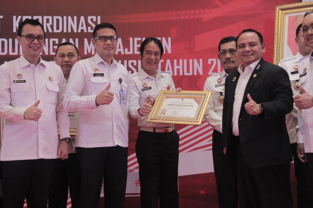 Penghargaan diserahkan langsung Sekretaris Jenderal Kemenkumham RI Komjen. Pol. Andap Budhi Revianto kepada Kepala Kantor Wilayah Kemenkumham Kaltim, Sofyan dalam Rapat Koordinasi Dukungan Manajemen Kinerja semester I Tahun 2023 yang diselenggarakan di Hotel Grand Mercure Harmoni, Jakarta, Senin (17/07/2023).