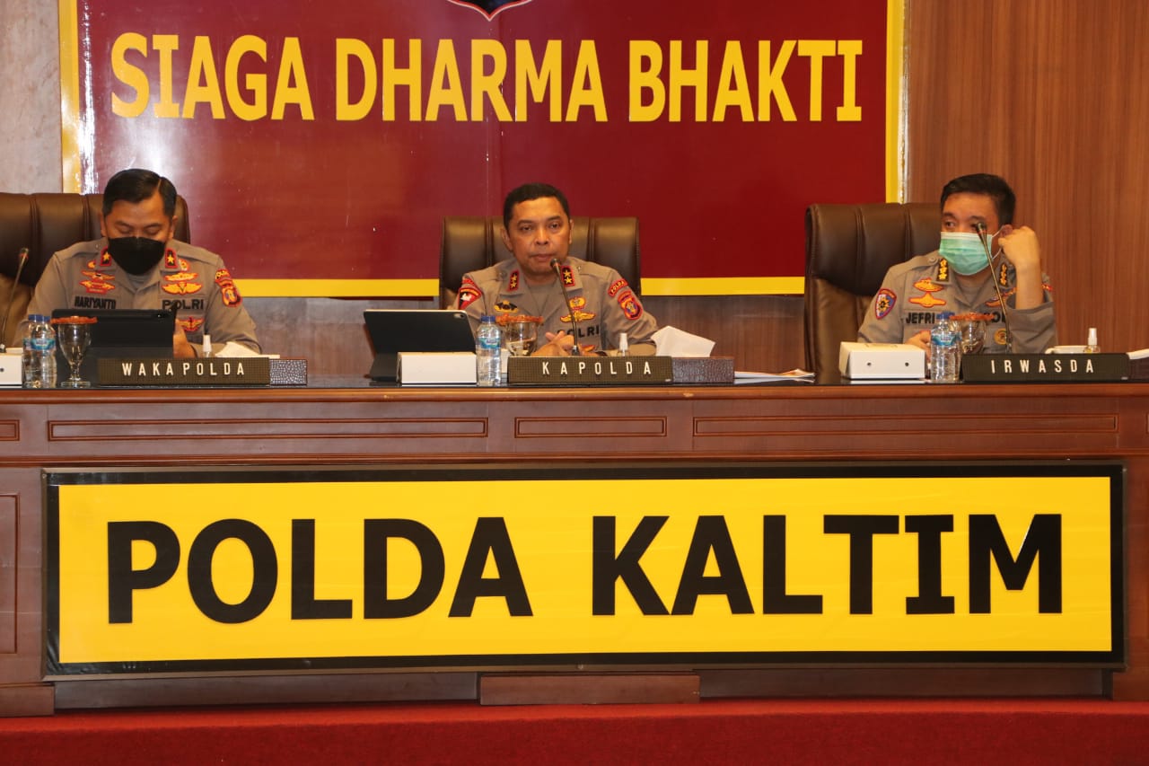 Balikpapan, Inibalikpapan.com – Untuk mengevaluasi kinerja personil seminggu yang lalu dan meningkatkan pencapaian dalam kinerja kepolisian, Kapolda Kaltim Irjen Pol. Drs. Herry Rudolf Nahak, M.Si., memimpin Anev Kamtibmas mingguan melalui Vicon (Video Conference) dengan Polres Jajaran di Ruang Rupatama Mapolda Kaltim, Selasa (25/5/2021).