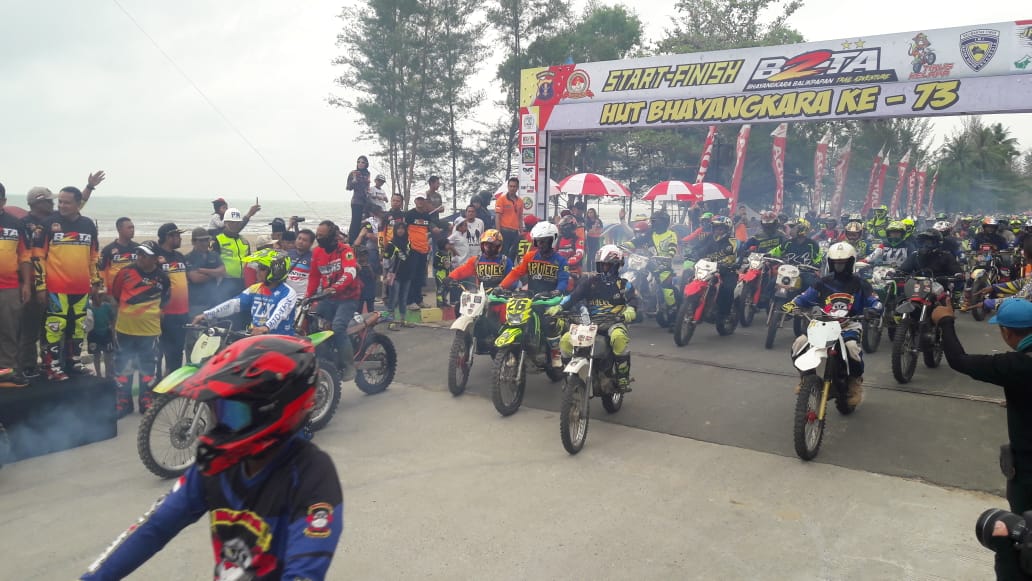 BALIKPAPAN, INibalikpapan.com— Puncak rangkaian Hari Bhyangkara ke 73 ditutup dengan kegiatan Bhyangkara Balikpapan Trail Adventur di kawasan Pantai Manggar Segara Sari, Balikpapan Timur, pada Sabtu (27/7/2019).