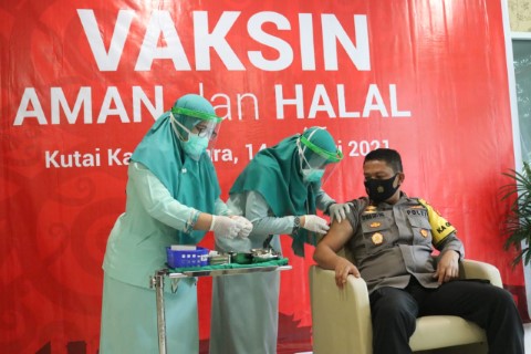 Kapolres Kukar Ikuti Vaksinasi Covid-19 Tahap Pertama