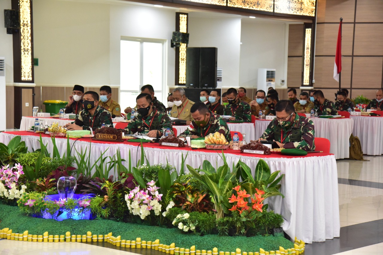 Kegiatan Vidio Telecoference ini dibuka secara terpusat oleh Asisten Teritorial Kasad Mayjen TNI Nurchahyanto, M.S.c.dengan Thema “TMMD Pengabdian Untuk Negeri” Langsung dari Markas Besar TNI-AD Jakarta, yang di ikuti oleh para Kasdam, Danrem, Kapendam, Para Dandim, Bupati, Ketua DPRD dan Kepala Bappeda Kabupaten/Kota.