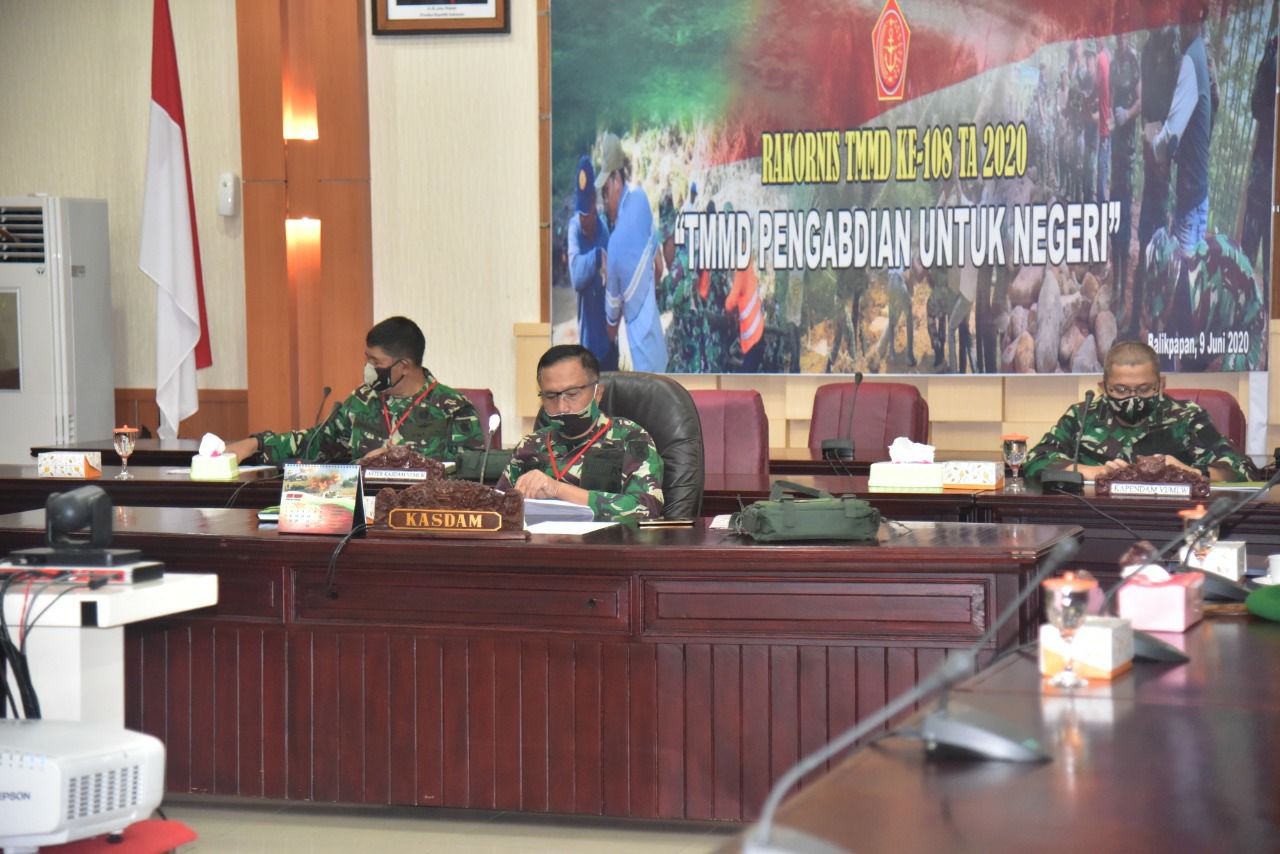 BALIKPAPAN, Inibalikpapan.com – Kasdam VI/Mlw Brigjen TNI Tri Nugraha Hartanta, S.Sos. bersama sejumlah pejabat Kodam VI/Mlw Selasa (9/6/2020), menggelar Video Conference (vidcon) Rapat Koordinasi Teknis TNI Manunggal Membangun Desa (Rakornis TMMD) ke-108 Tahun 2020 dengan Aster Kasad, Mayor Jenderal TNI Bakti Agus Fadjari, S.I.P., M.Si.