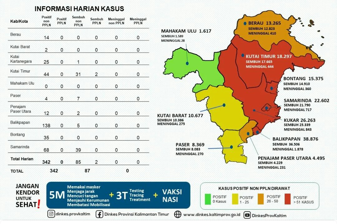 Satgas Penanganan Covid-19 Provinsi Kaltim menetapkan lima daerah zona merah covid-19 yakni Kota Balikpapan, Bontang dan Samarinda. Serta Kabupaten Kutai Timur dan Kutai Kertanegara.