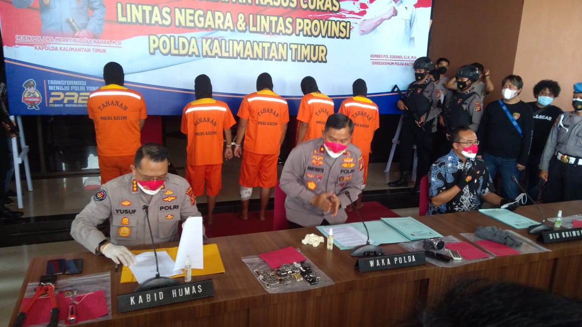 BALIKPAPAN, Inibalikpapan.com – Polda Kaltim bersama Polda Pelulauan Riau (Kepri) dan Polresta Belerang berhasil membengkuk kawanan perampok yang melakukan pencurian dengan kekerasan (curat) di sejumlah provinsi termasuk Kaltim hingga di Malaysia.