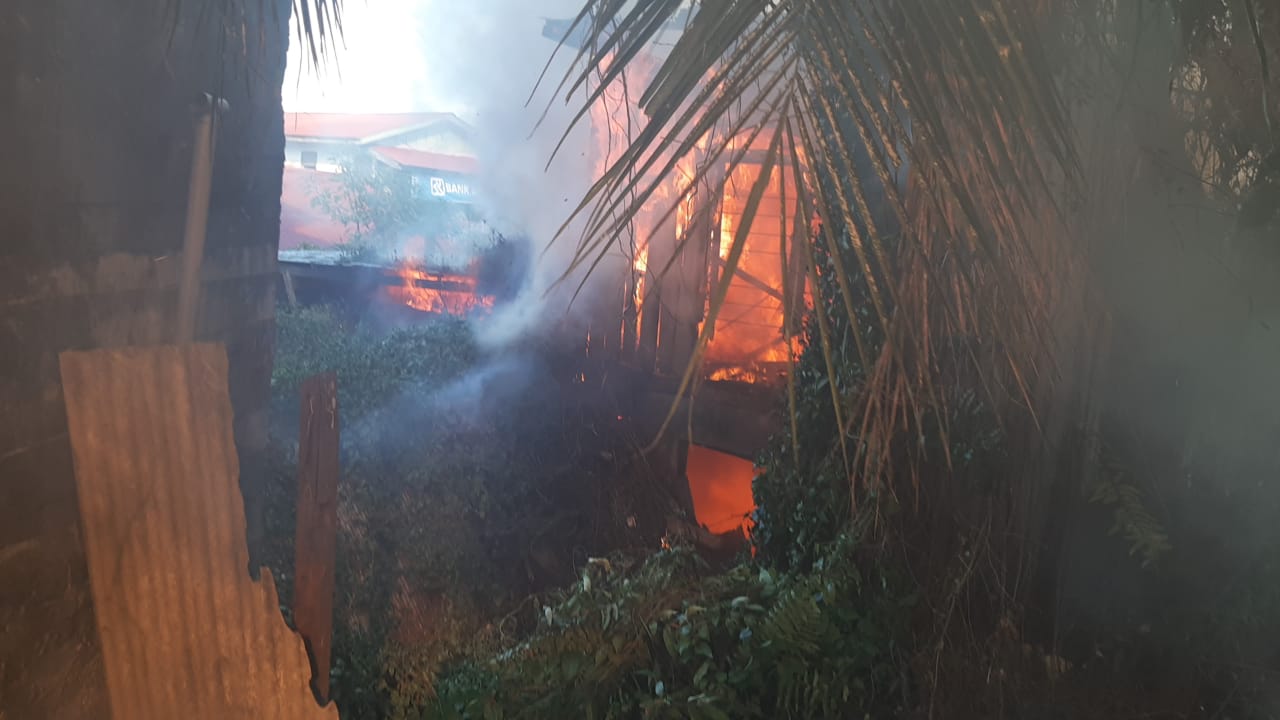 Api dengan cepat membakar rumah warga pada lantai dua, berkat kesigapan petugas dan dibantu sejumlah warga, api dengan cepat dipadamkan.