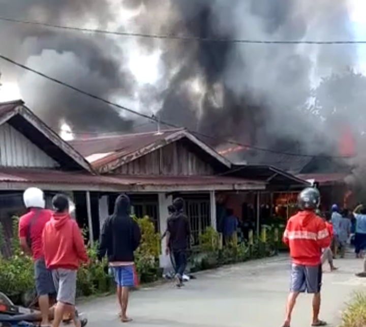 Api dengan cepat membesar dan melahap rumah warga yang terbuat dari kayu, belum diketahui pasti penyebab kebakaran dan jumlah rumah yang terbakar, petugas BPBD bersama relawan dibantu warga melakukan proses pemadaman.