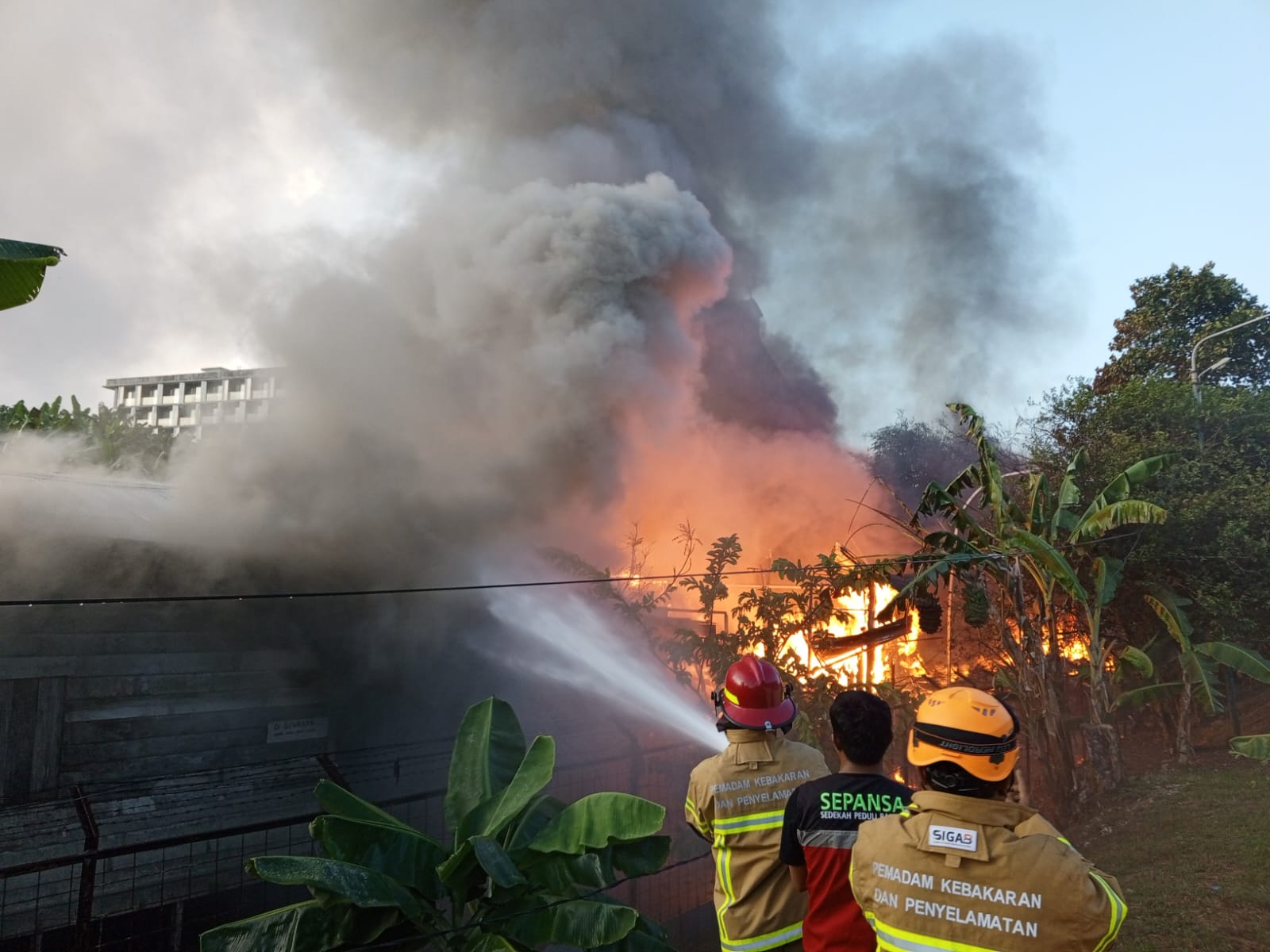 Tampak kobaran api cukup besar, ditambah bangunan yang terbakar semi permanen.